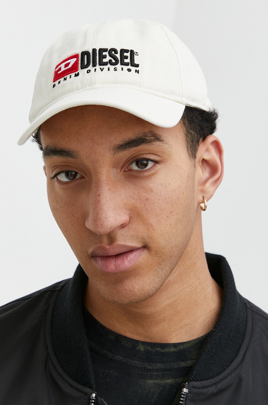 Diesel czapka z daszkiem bawełniana kolor beżowy z aplikacją