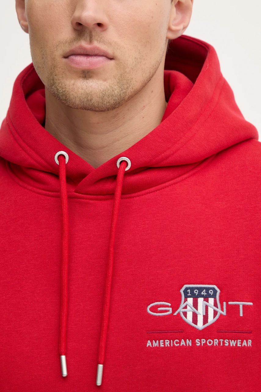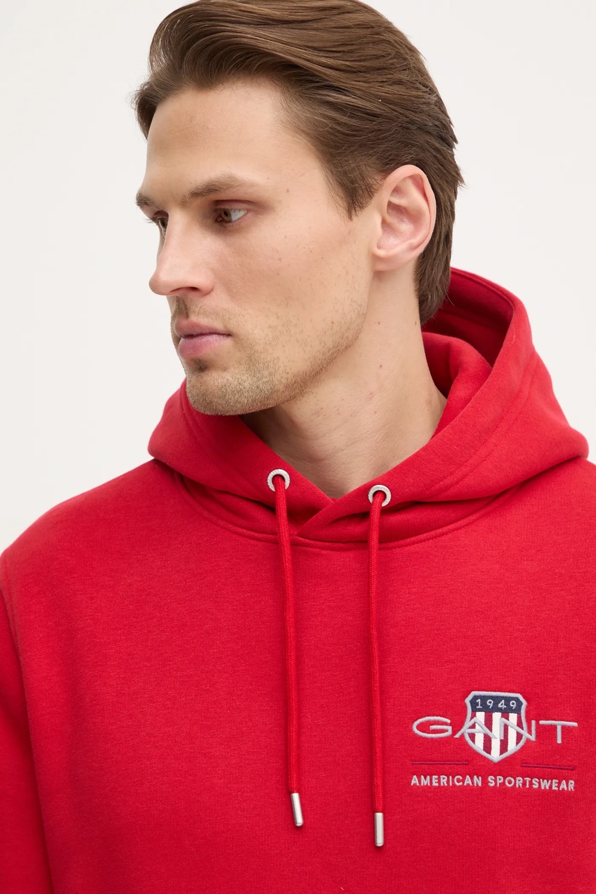 Gant bluza męska kolor czerwony z kapturem z aplikacją