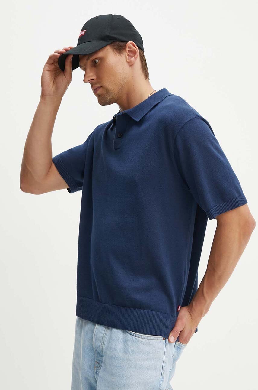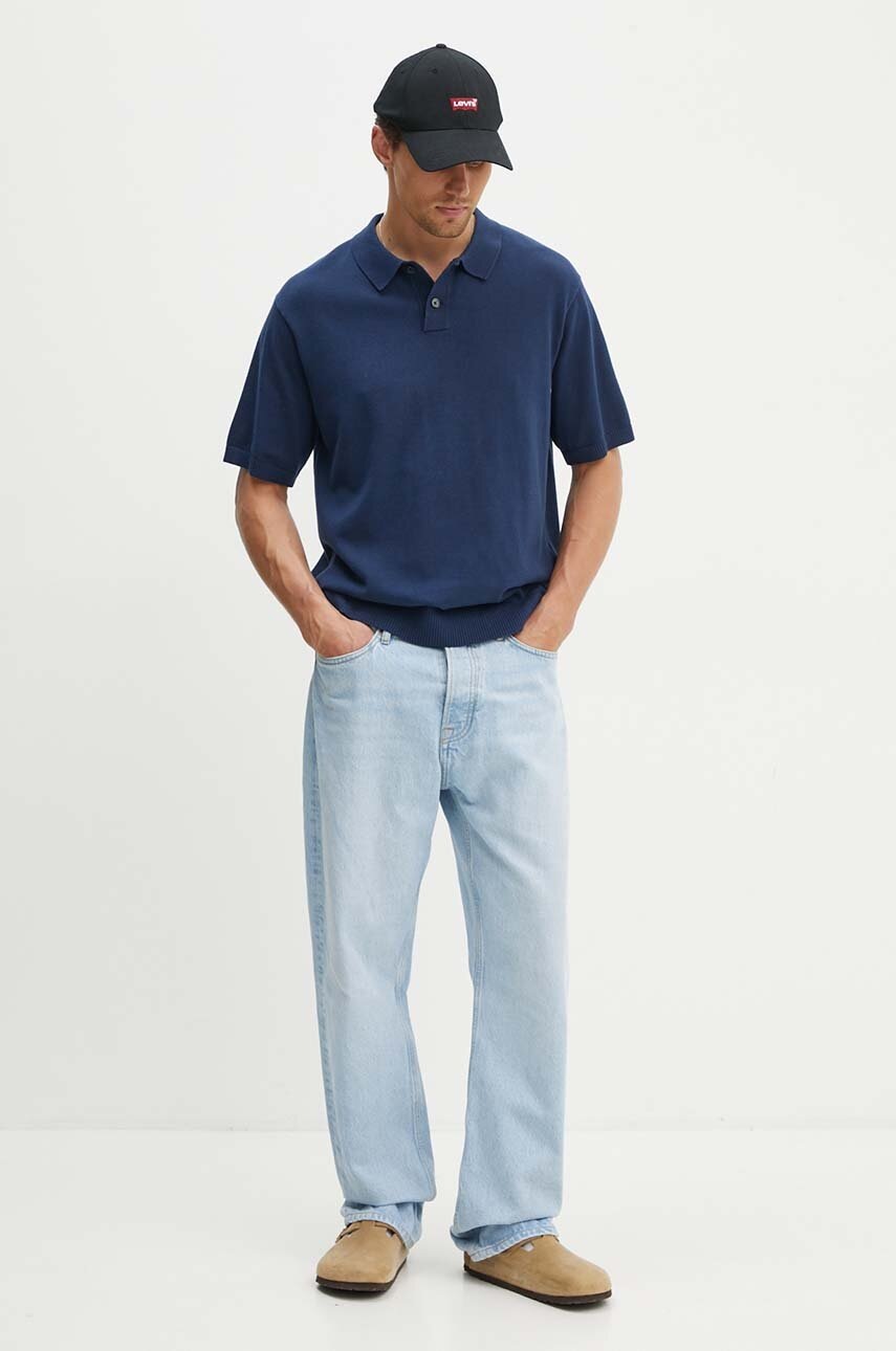 Levi's polo bawełniane kolor granatowy gładki A7294