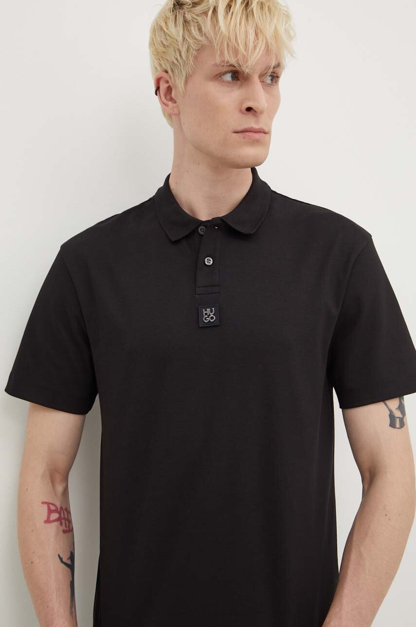 HUGO polo bawełniane kolor czarny gładki 50517638