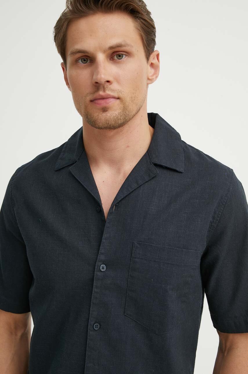 Samsoe Samsoe koszula z domieszką lnu SAOSCAR kolor granatowy regular M24200074