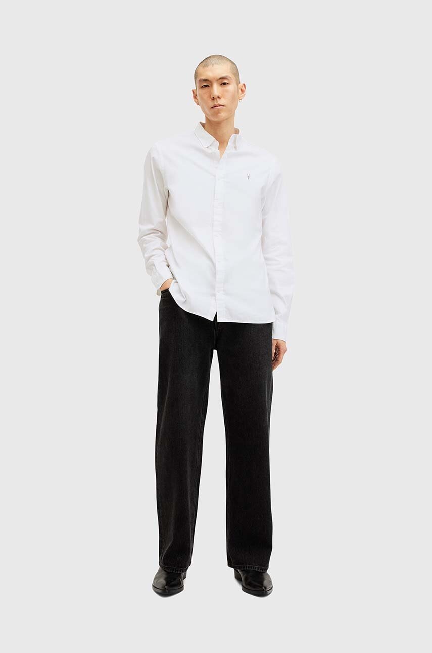 AllSaints koszula bawełniana HAWTHORNE LS SHIRT męska kolor biały slim z kołnierzykiem klasycznym M150SB