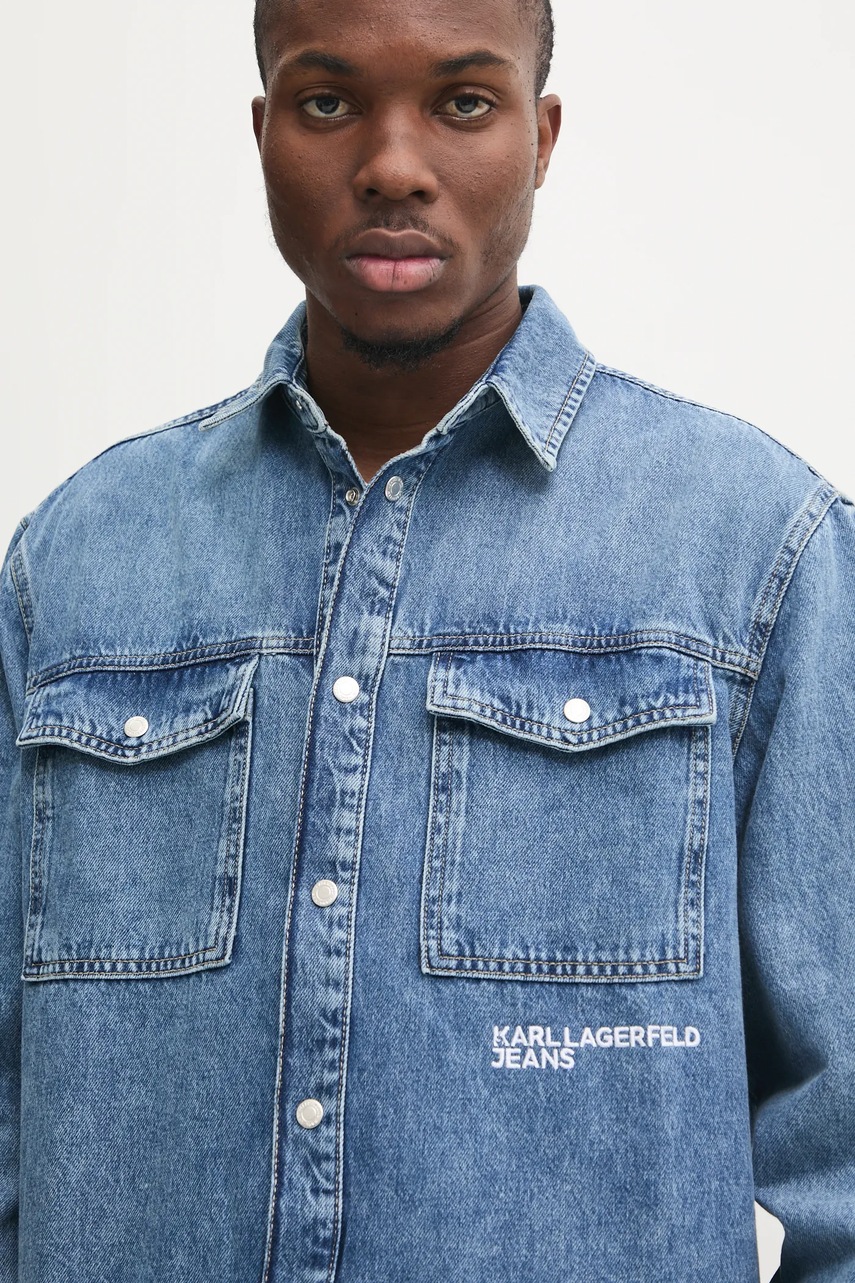 Karl Lagerfeld Jeans koszula jeansowa męska kolor niebieski regular z kołnierzykiem klasycznym A1M16012