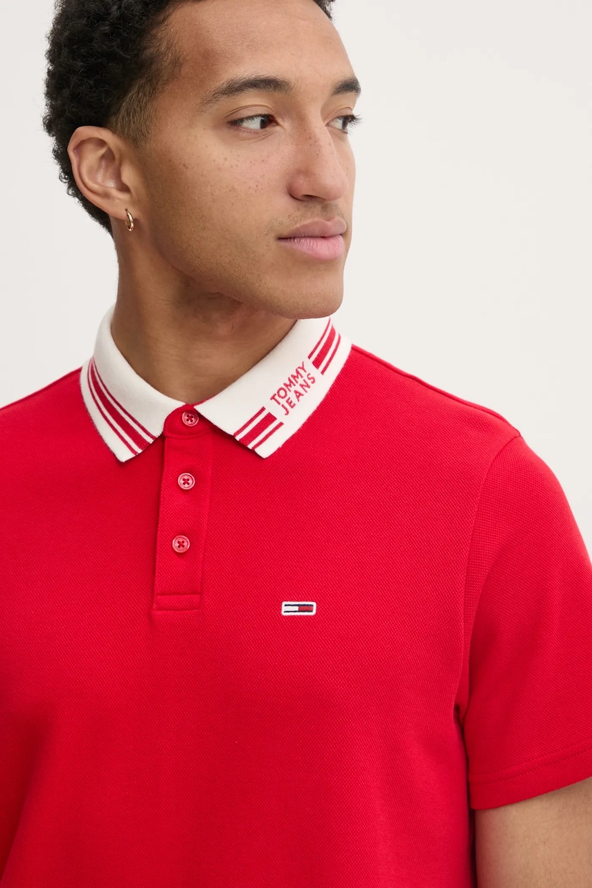 Tommy Jeans polo męski kolor czerwony gładki DM0DM20225