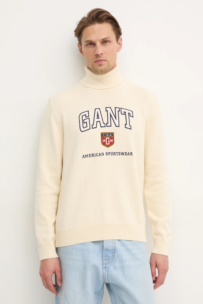 Gant sweter męski kolor beżowy z golferm 8030224