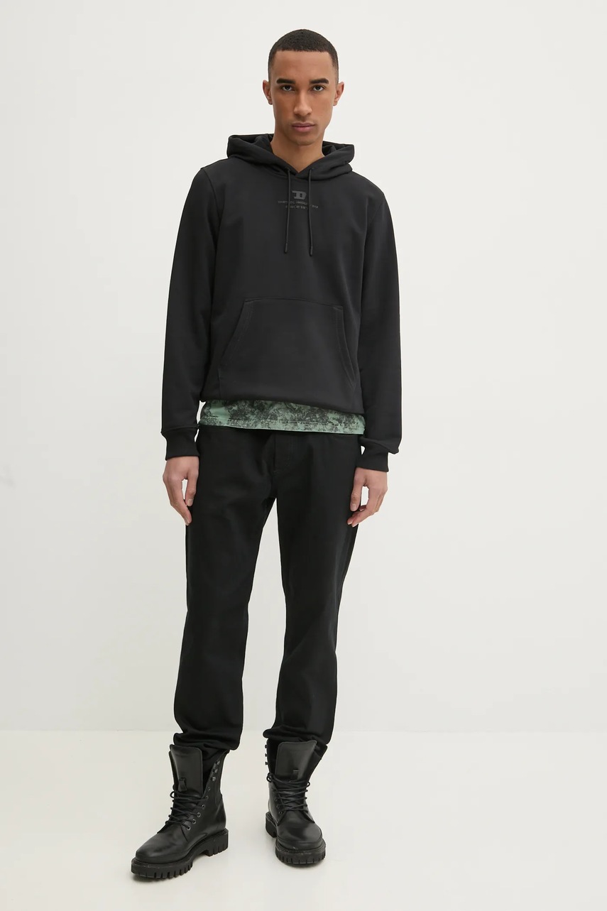 Diesel bluza S-GINN-HOOD-R3 SWEAT-SHIRT męska kolor czarny z kapturem z aplikacją A16425.0HYAT