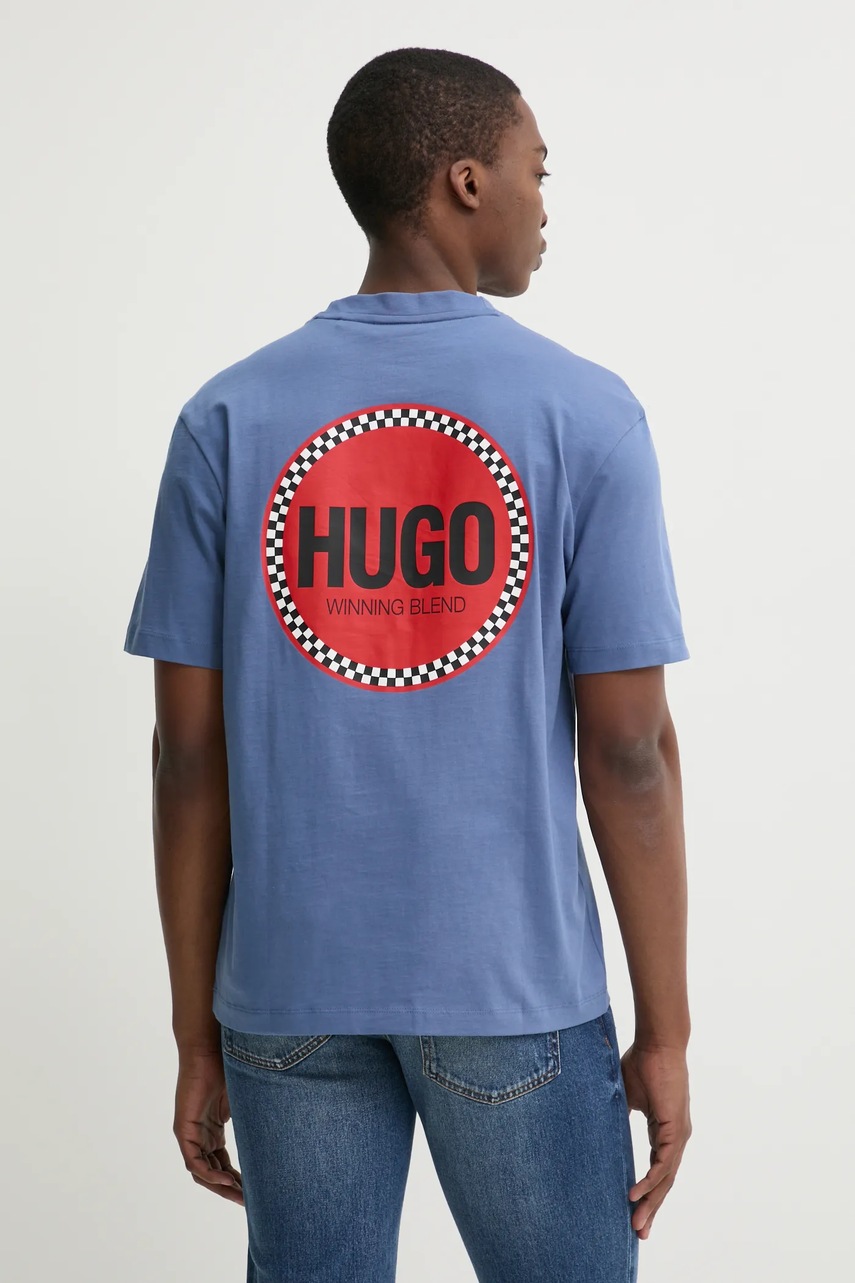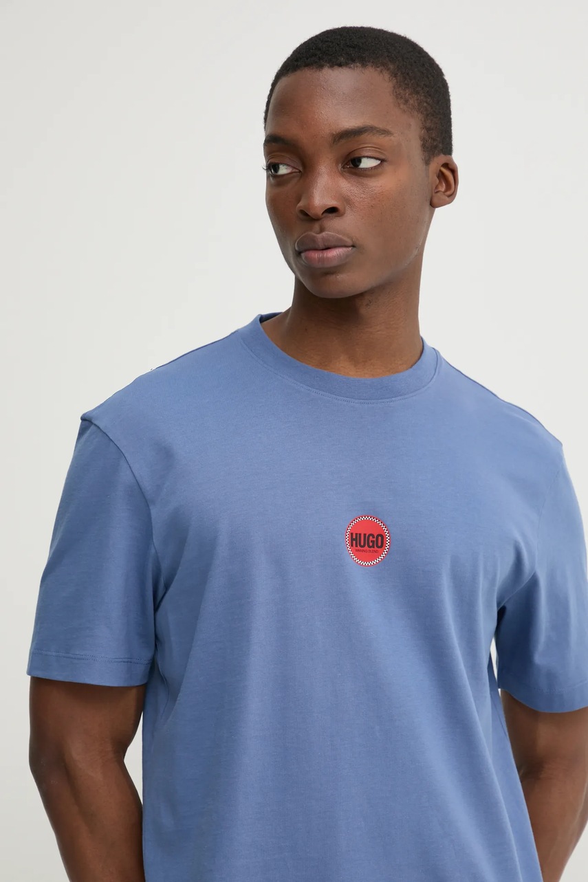 HUGO t-shirt bawełniany męski kolor niebieski z nadrukiem 50530647