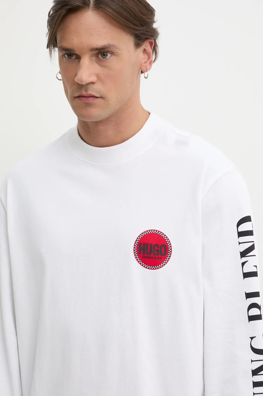 HUGO longsleeve męski kolor biały z nadrukiem 50531250