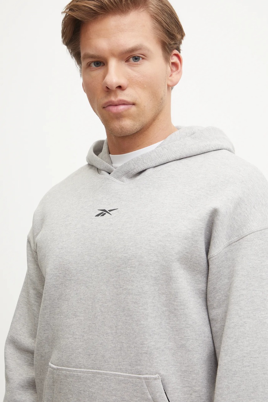 Reebok bluza dresowa Athlete kolor szary z kapturem melanżowa 100215042