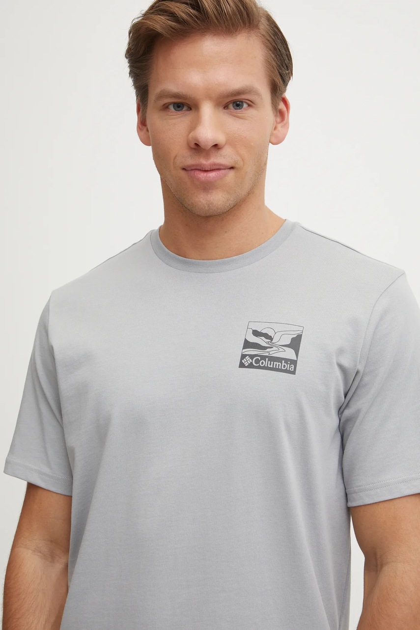 Columbia t-shirt bawełniany Explorers Canyon męski kolor szary z nadrukiem 2036451.