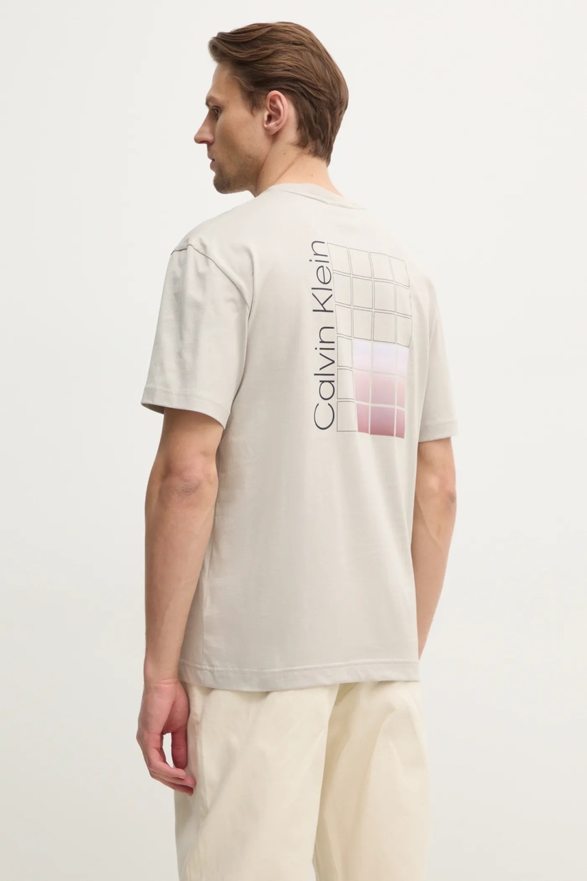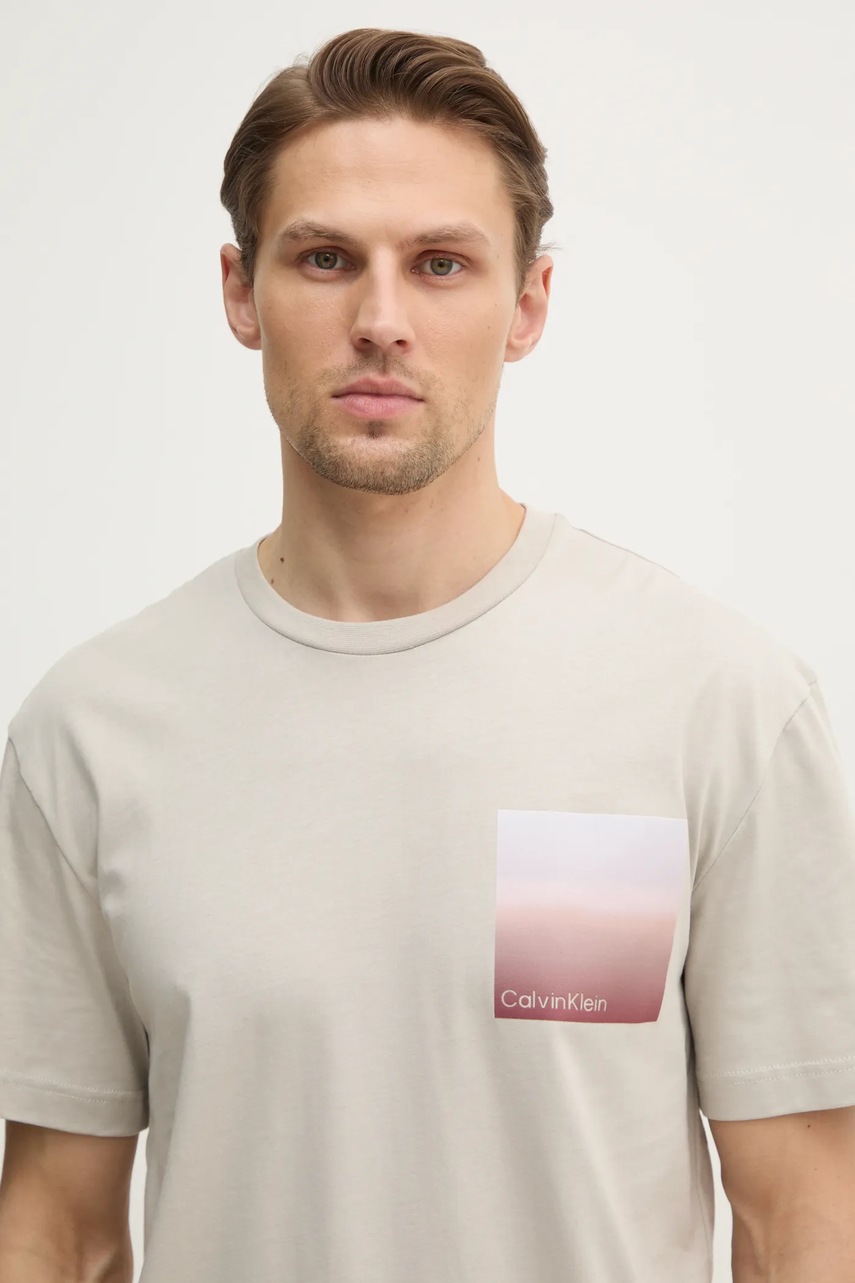 Calvin Klein t-shirt bawełniany męski kolor beżowy z nadrukiem K10K114164