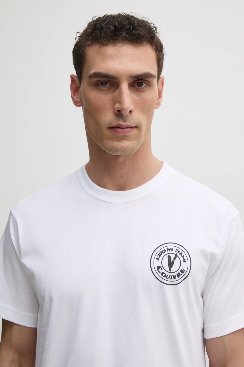 Versace Jeans Couture t-shirt bawełniany męski kolor biały z nadrukiem 78GAHE07 CJ00E