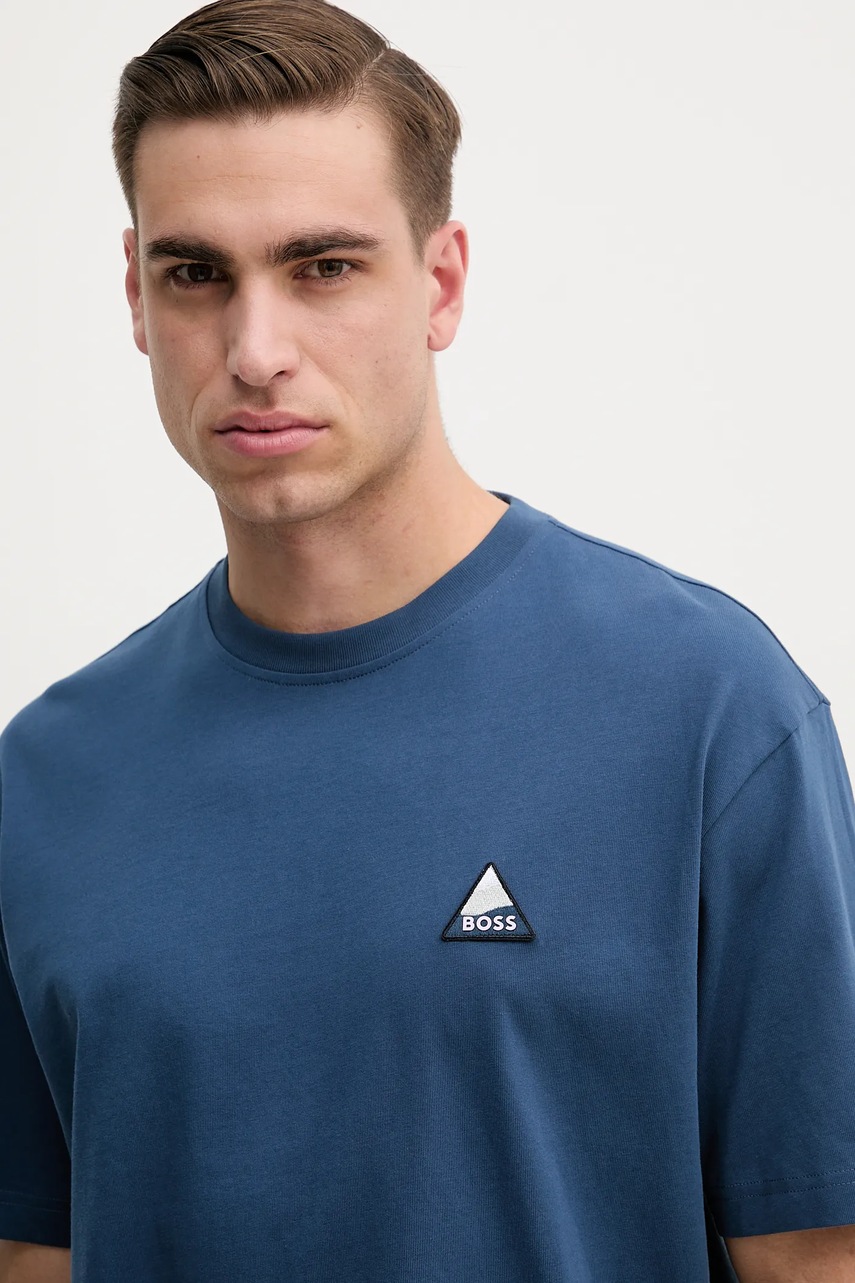 BOSS Orange t-shirt bawełniany męski kolor niebieski z aplikacją 50539195