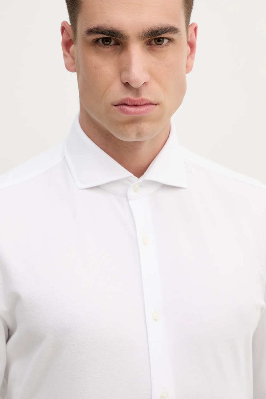 BOSS koszula bawełniana męska kolor biały slim z kołnierzykiem włoskim 50527675