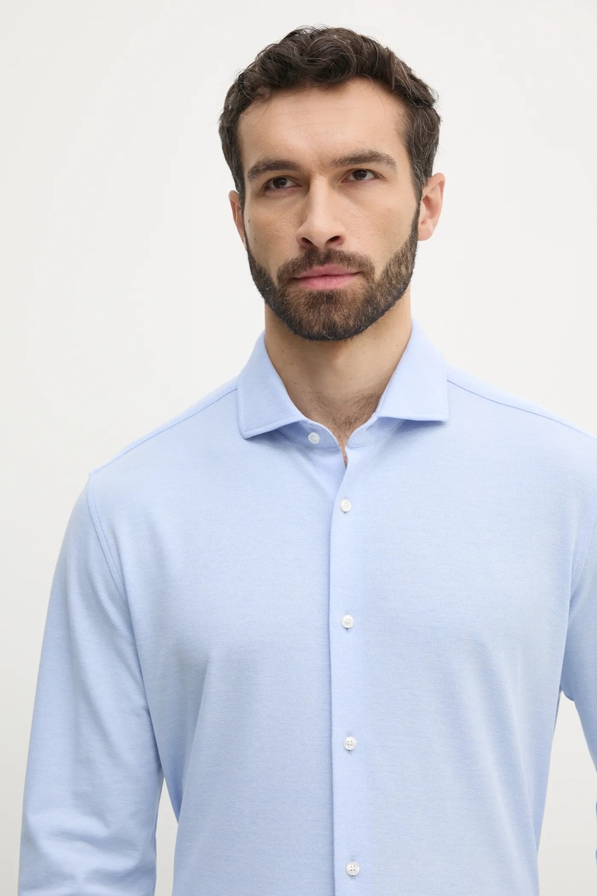 BOSS koszula bawełniana męska kolor niebieski slim z kołnierzykiem włoskim 50527675