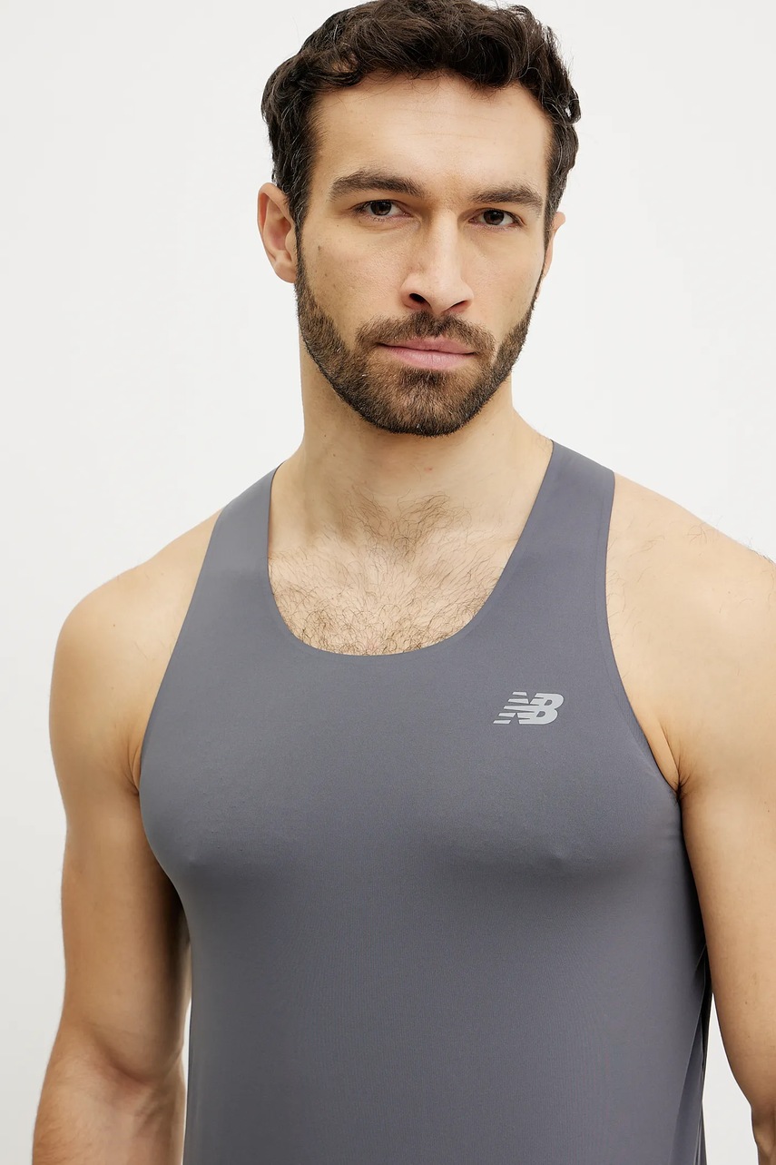 New Balance t-shirt do biegania Race Day kolor szary MT43512GT