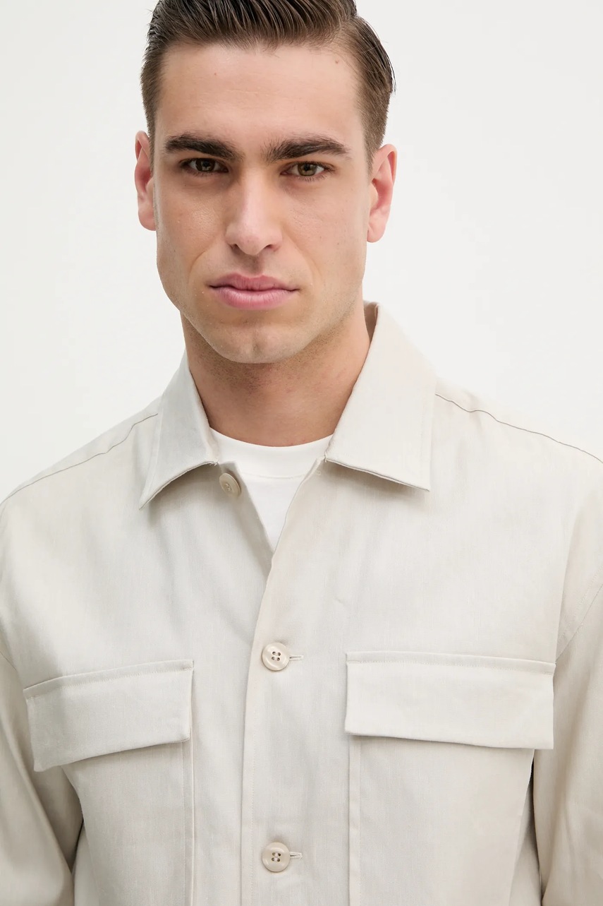 Calvin Klein koszula z domieszką lnu kolor beżowy regular z kołnierzykiem klasycznym K10K114191