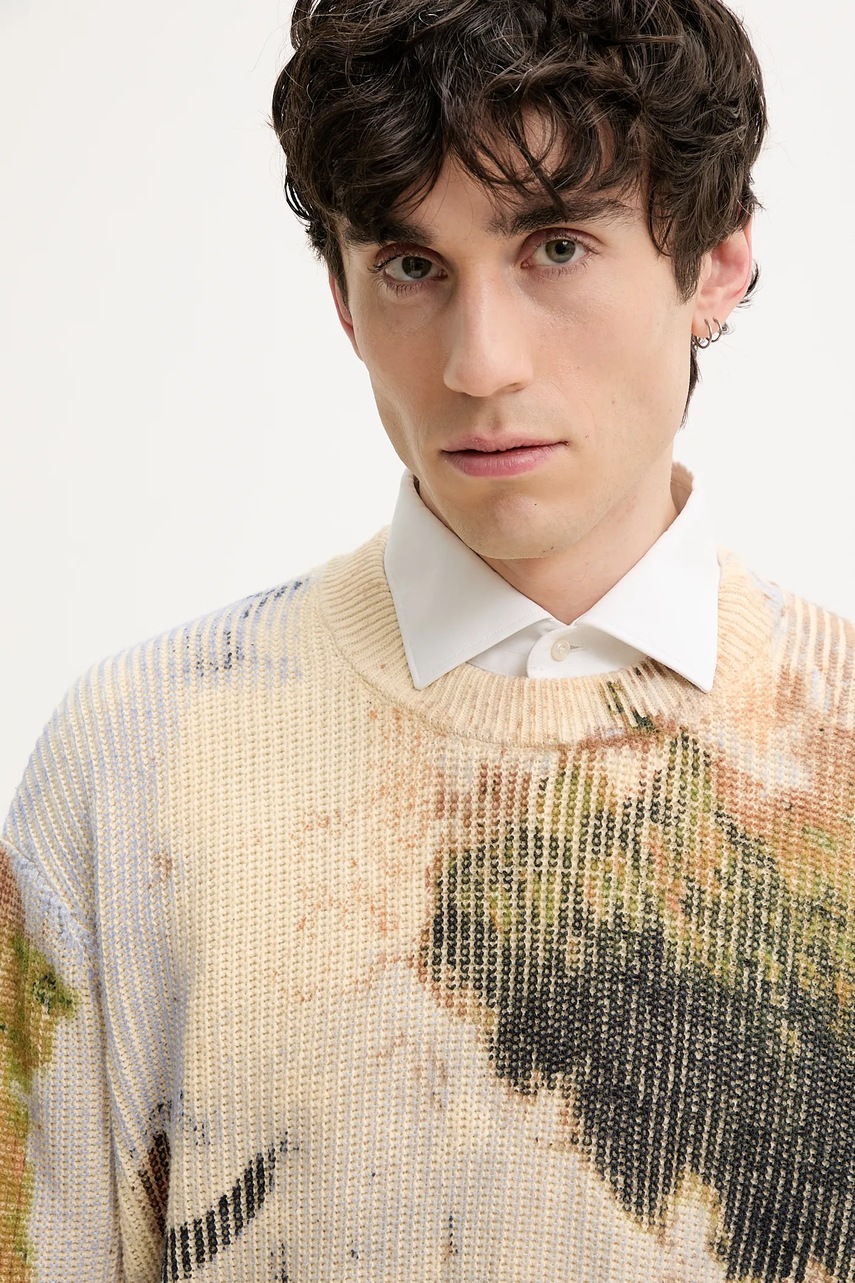 Desigual sweter MASTERPIECE męski kolor beżowy 25SMJF05