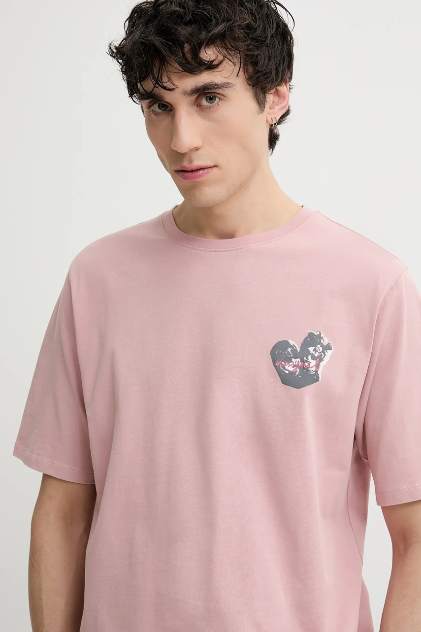 Desigual t-shirt bawełniany ROSA męski kolor różowy z nadrukiem 25SMTK21