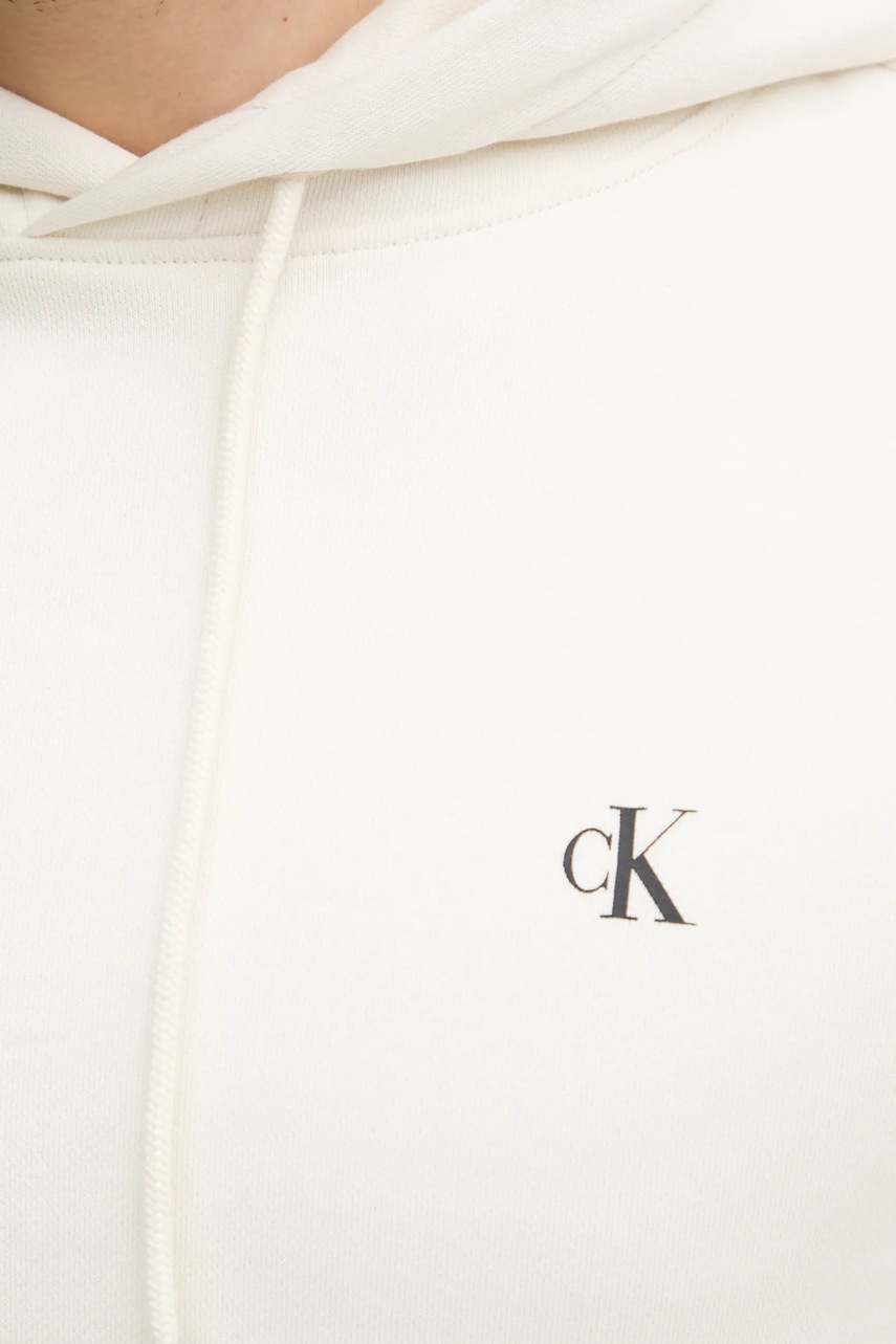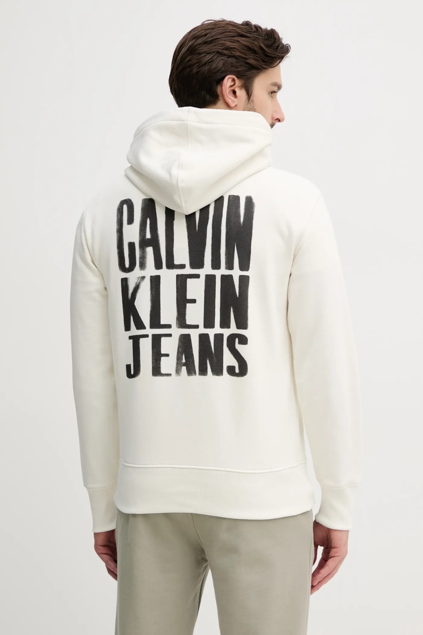 Calvin Klein Jeans bluza bawełniana męska kolor beżowy z kapturem z nadrukiem J30J327526