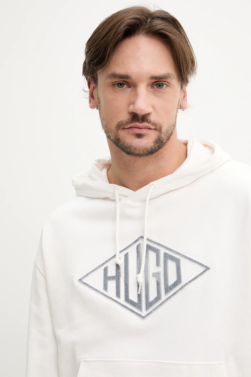 HUGO bluza bawełniana męska kolor biały z kapturem z aplikacją 50534947