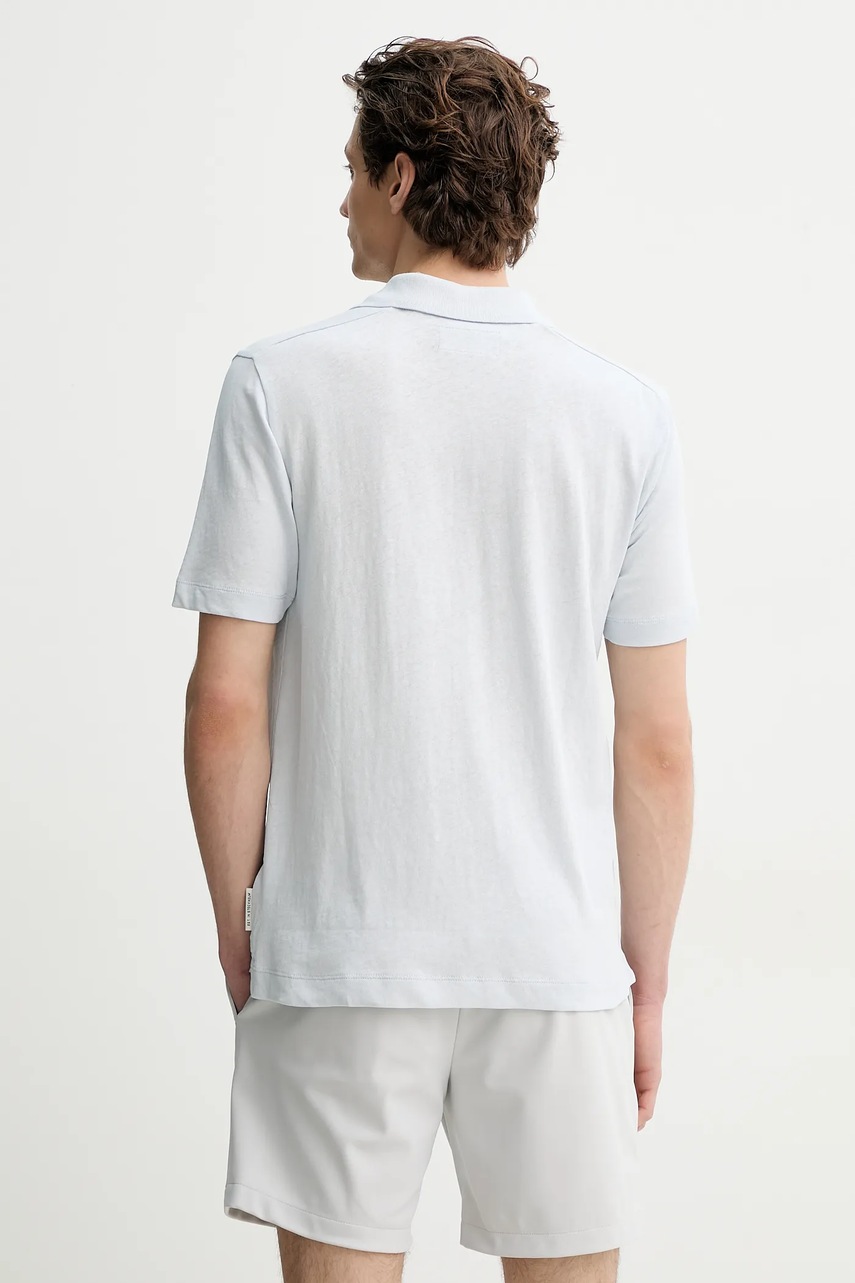 Marc O'Polo polo z domieszką lnu męski kolor niebieski gładki 523209153026