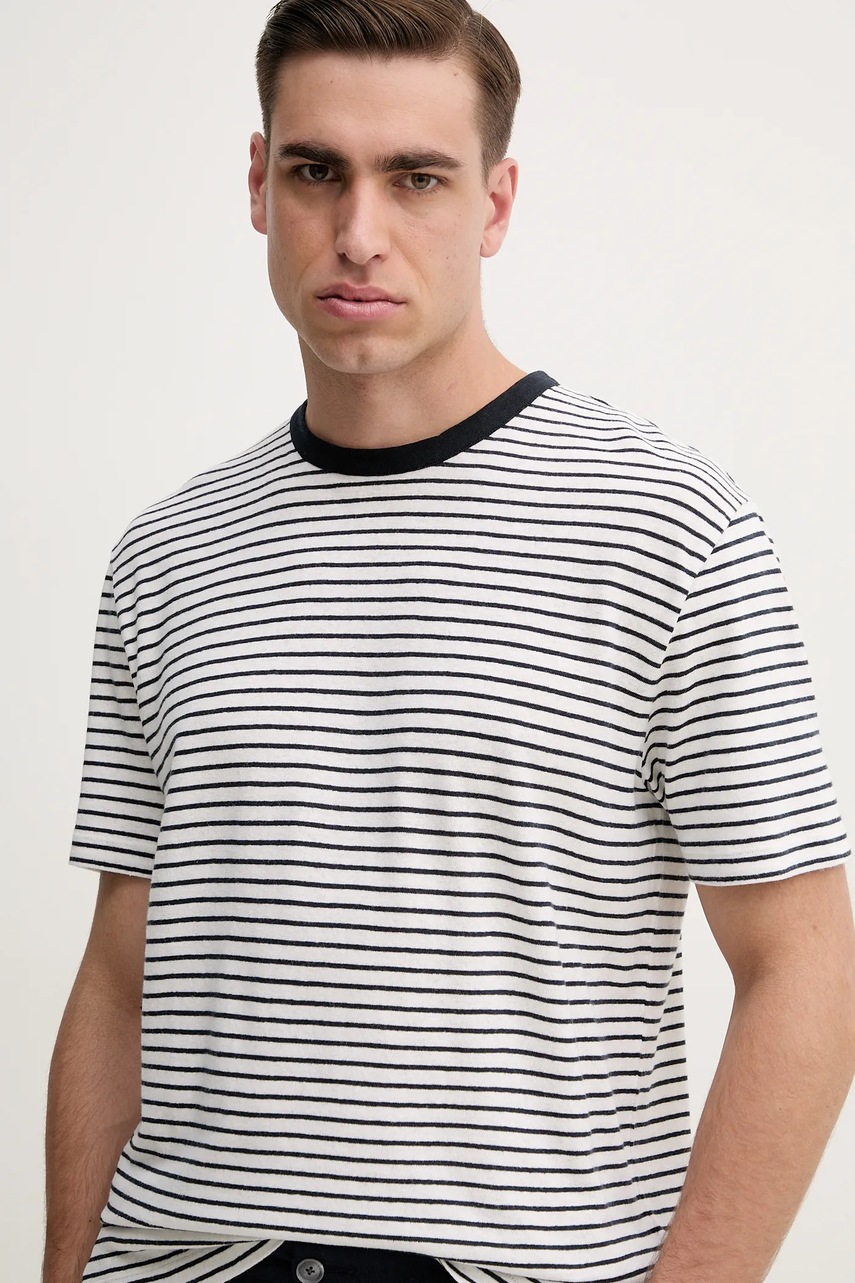 BOSS t-shirt z domieszką lnu męski kolor granatowy wzorzysty 50537498