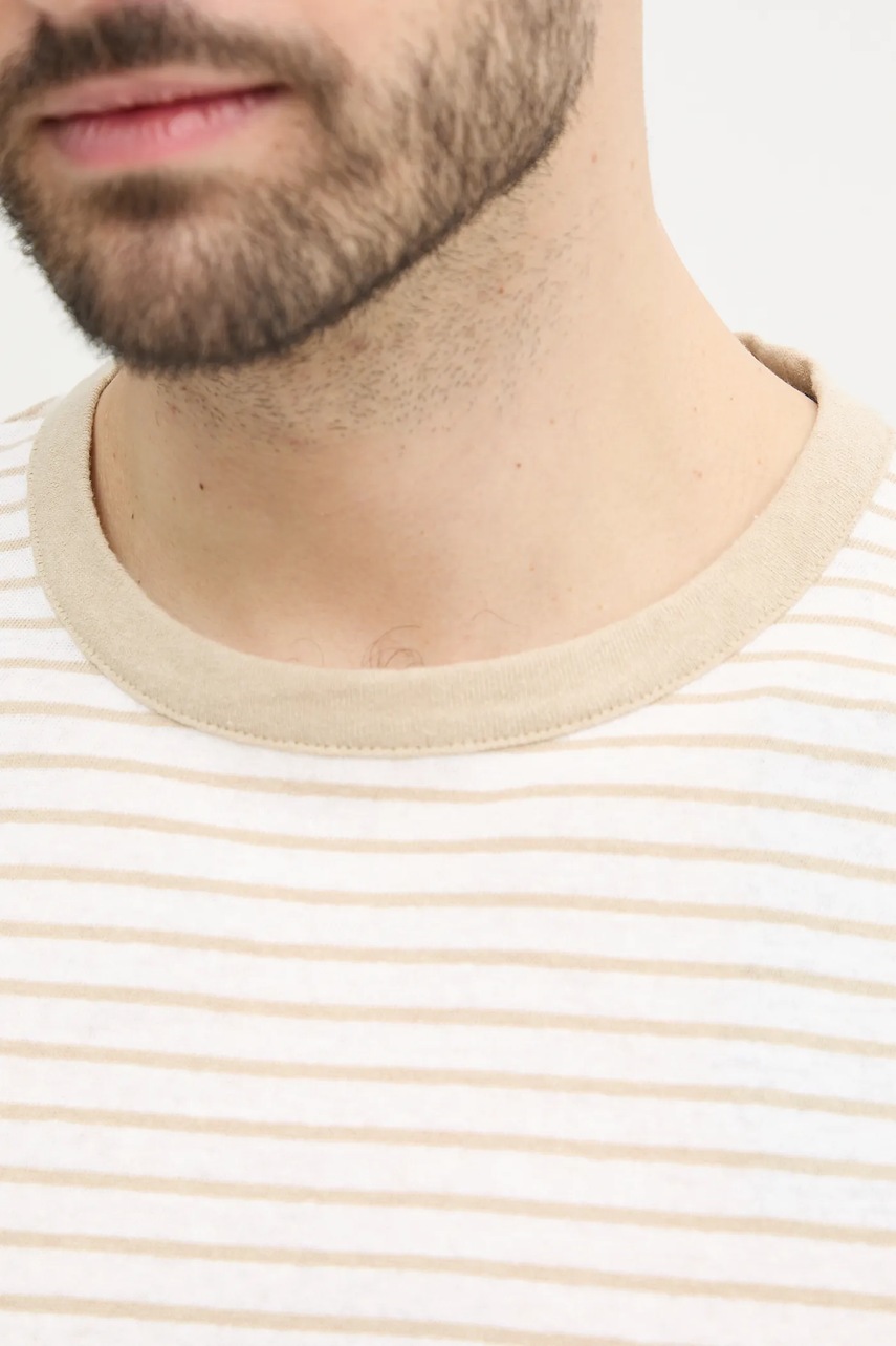BOSS t-shirt z domieszką lnu męski kolor biały wzorzysty 50537498