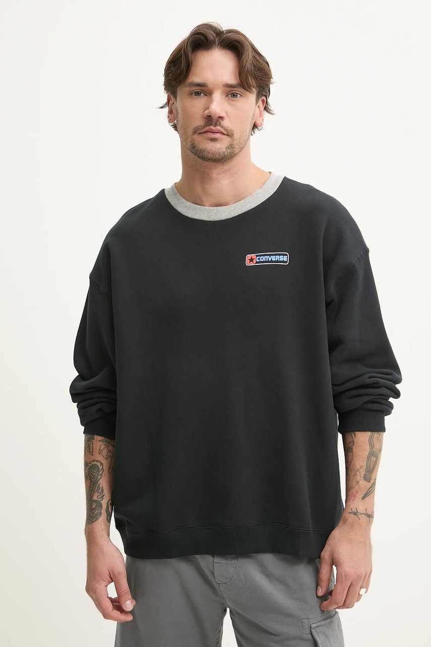 Converse bluza bawełniana męska kolor czarny z nadrukiem 10028407-A01