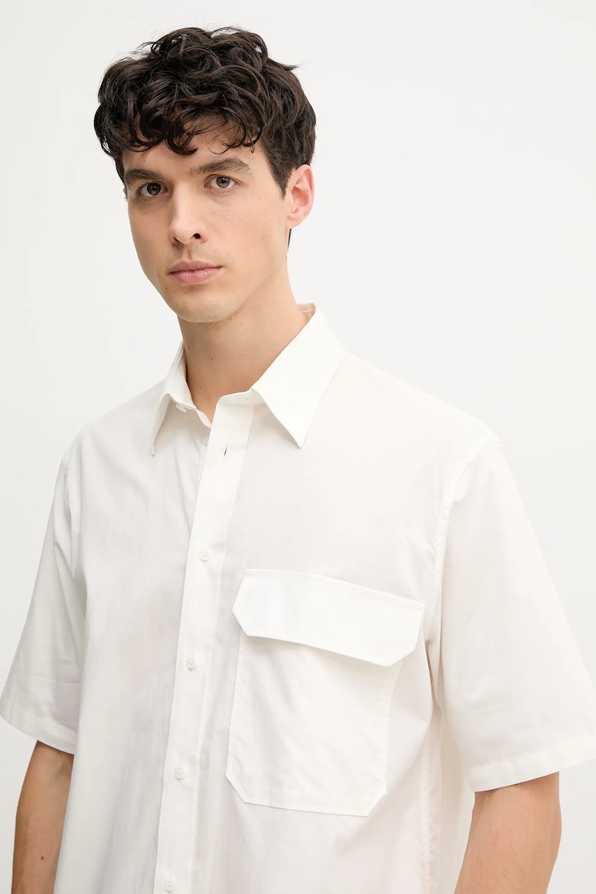 Armani Exchange koszula bawełniana męska kolor beżowy relaxed z kołnierzykiem klasycznym XM000449 AF13167
