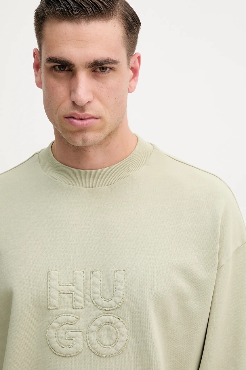 HUGO bluza bawełniana męska kolor zielony z aplikacją 50535258