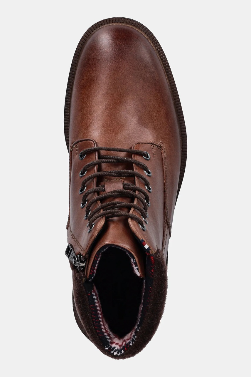 Tommy Hilfiger trapery skórzane CLEATED HILFIGER W LTH BOOT męskie kolor brązowy FM0FM05562