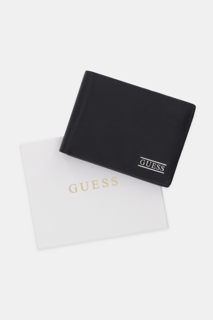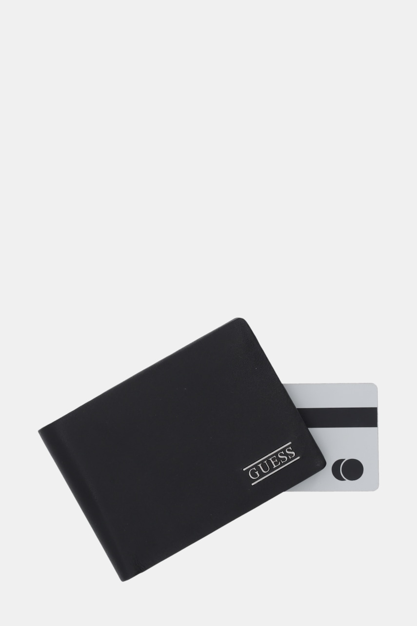 Guess portfel skórzany BOSTON męski kolor czarny SMNEBR LEA27