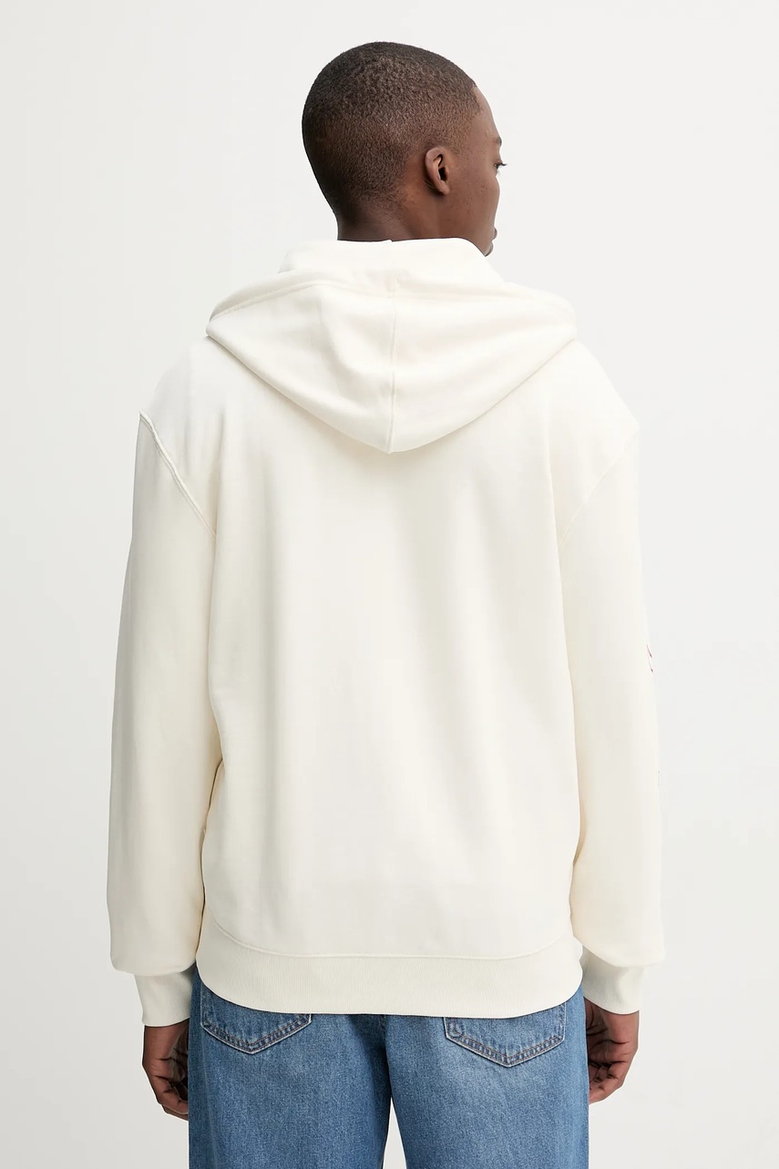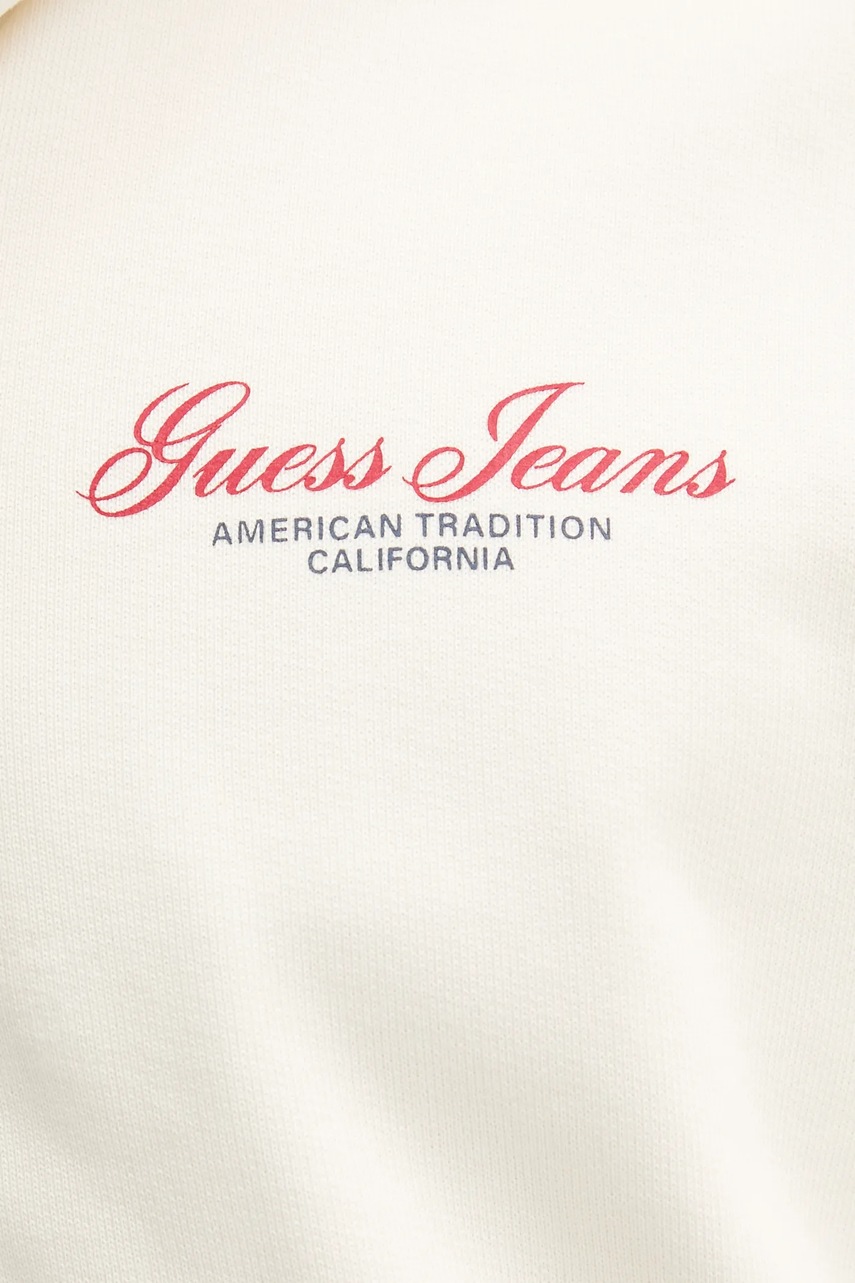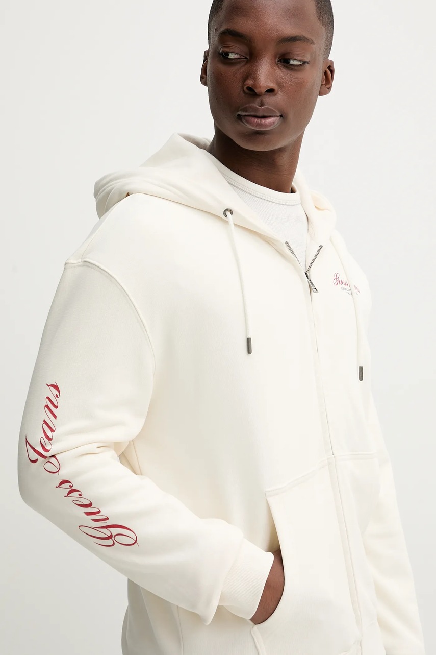 Guess Jeans bluza bawełniana męska kolor beżowy z kapturem z nadrukiem M5YQ15 KCPR1