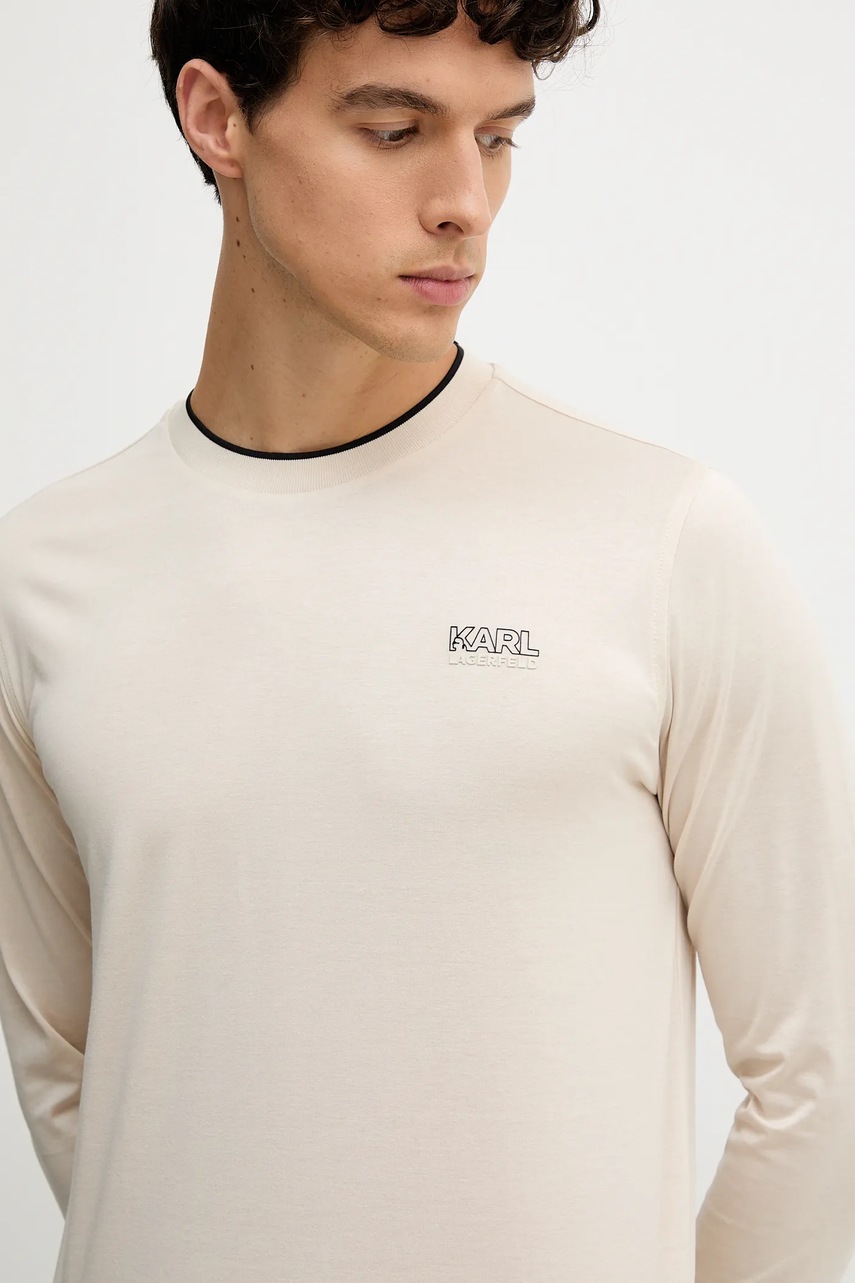 Karl Lagerfeld longsleeve bawełniany kolor beżowy z nadrukiem 554200.755001