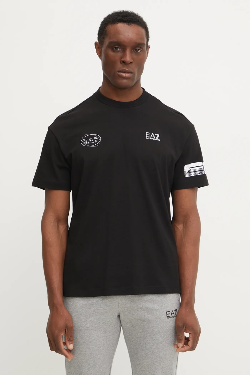 EA7 Emporio Armani t-shirt bawełniany męski kolor czarny z nadrukiem AF12874.7M000302