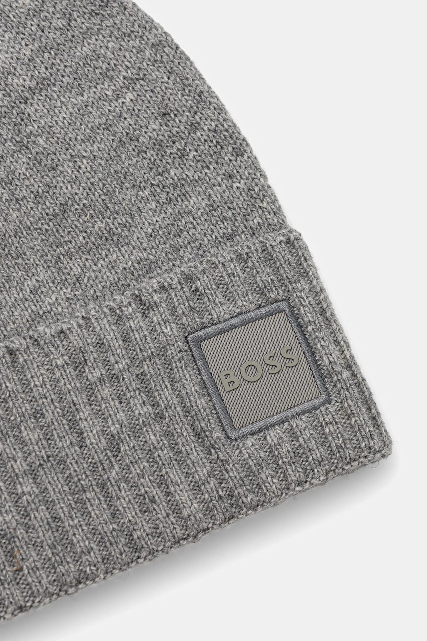 BOSS Orange czapka wełniana kolor szary z cienkiej dzianiny wełniana 50522447