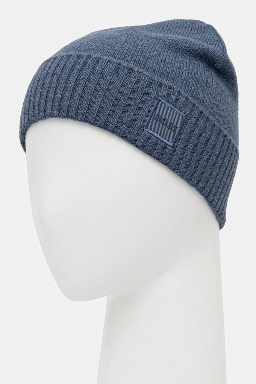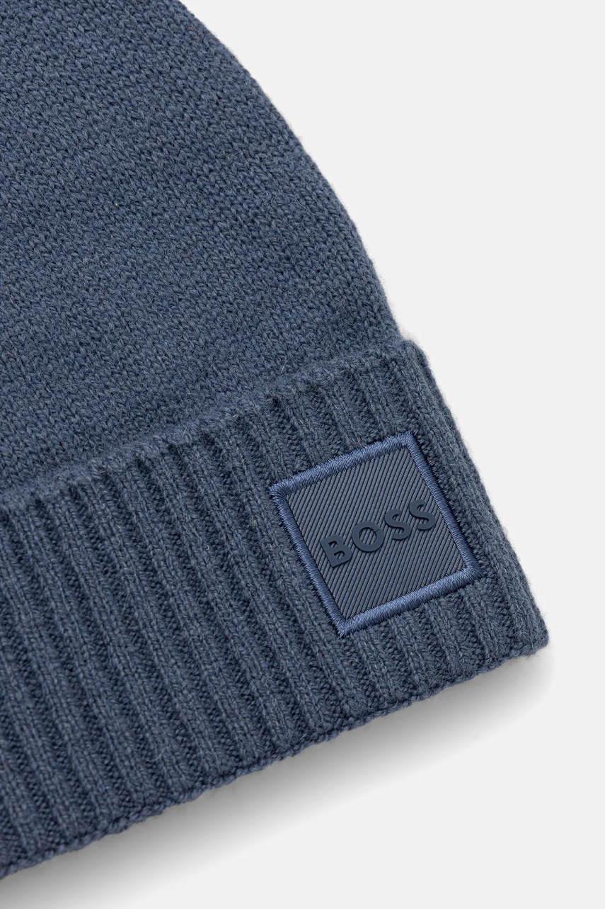 BOSS Orange czapka wełniana kolor niebieski z cienkiej dzianiny wełniana 50522447