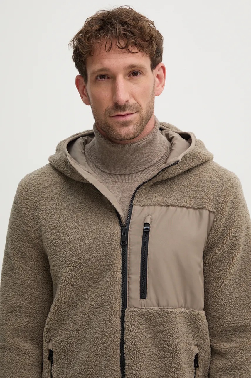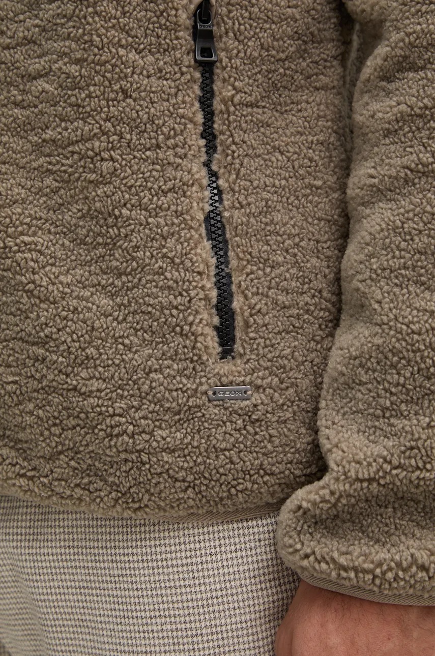 Geox bluza polarowa kolor zielony z kapturem gładka M4675H-T3171-F5259