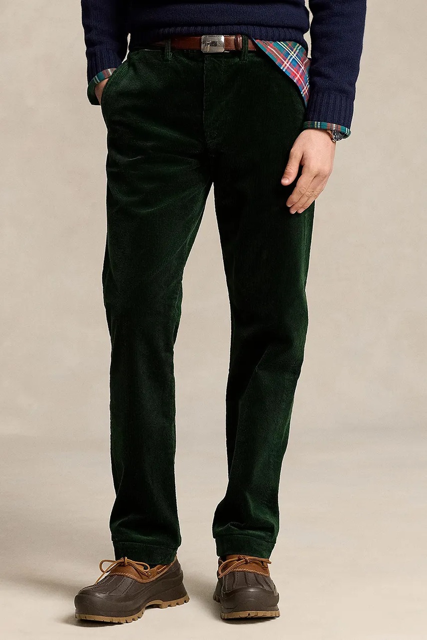 Polo Ralph Lauren spodnie sztruksowe kolor zielony proste 710884820