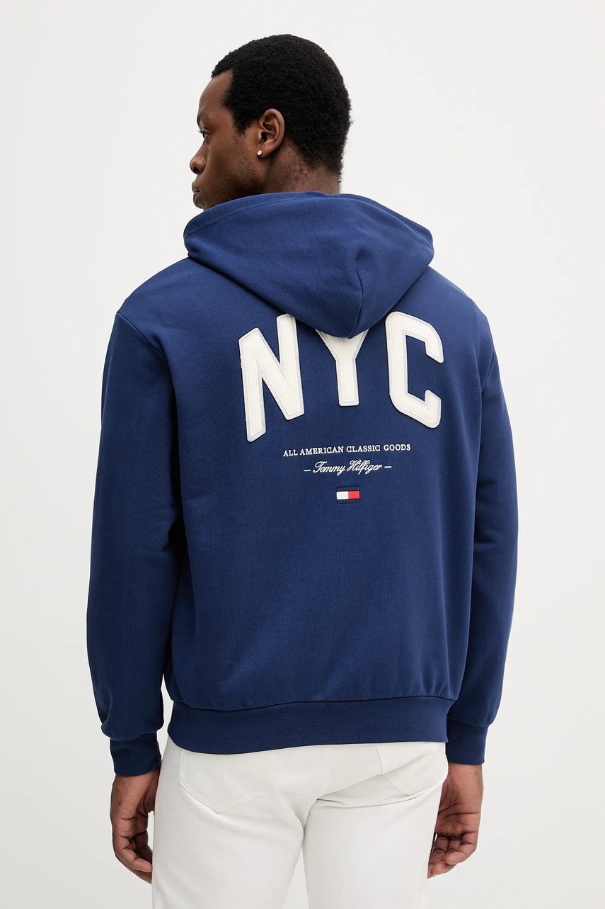 Tommy Hilfiger bluza bawełniana męska kolor granatowy z kapturem z aplikacją MW0MW39683