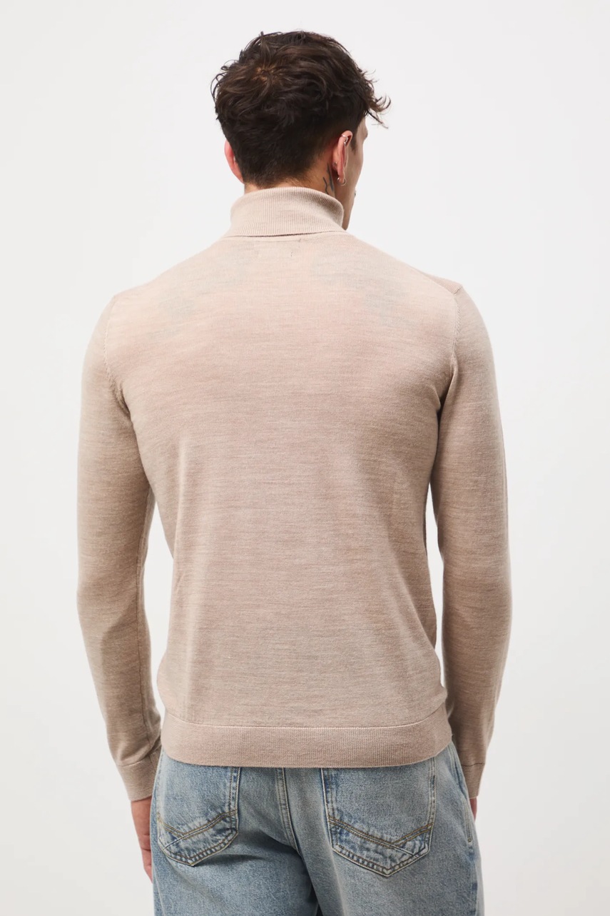 Medicine sweter z wełny merino męski kolor beżowy lekki z golferm