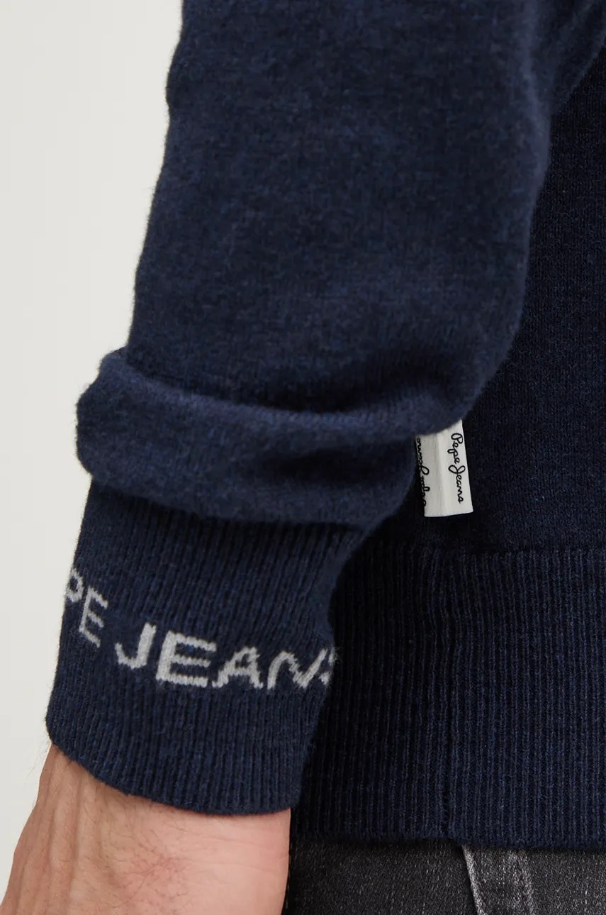 Pepe Jeans sweter z domieszką wełny NEW ANDRE CREW NECK męski kolor granatowy lekki PM702469