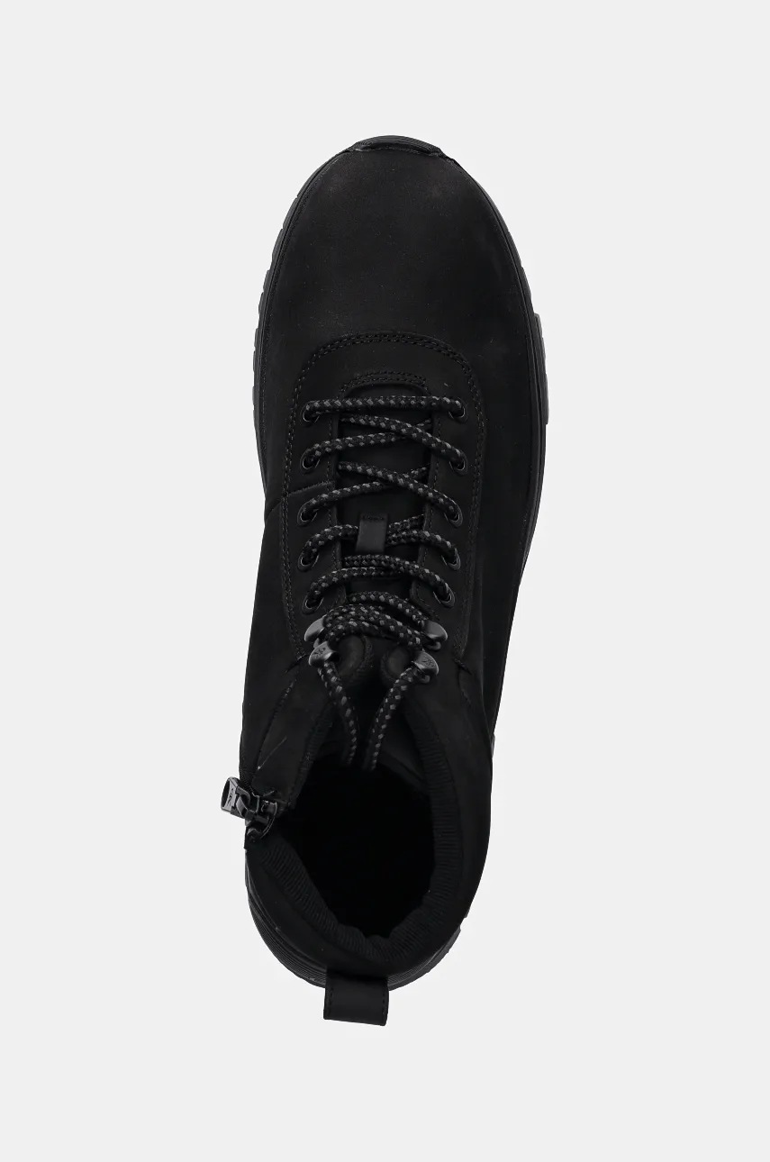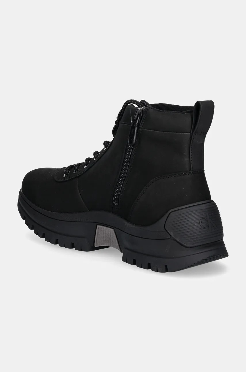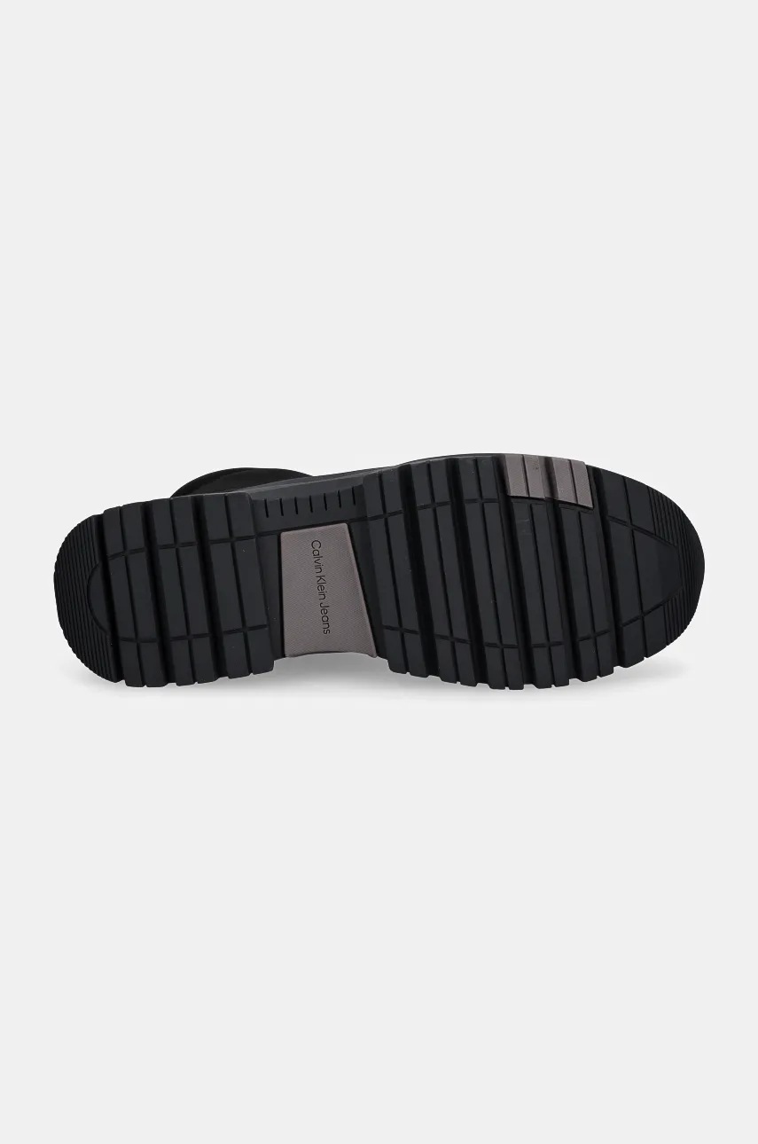 Calvin Klein Jeans trapery skórzane HYBRID WP BOOT LACEUP REBELLIOUS męskie kolor czarny YM0YM01077