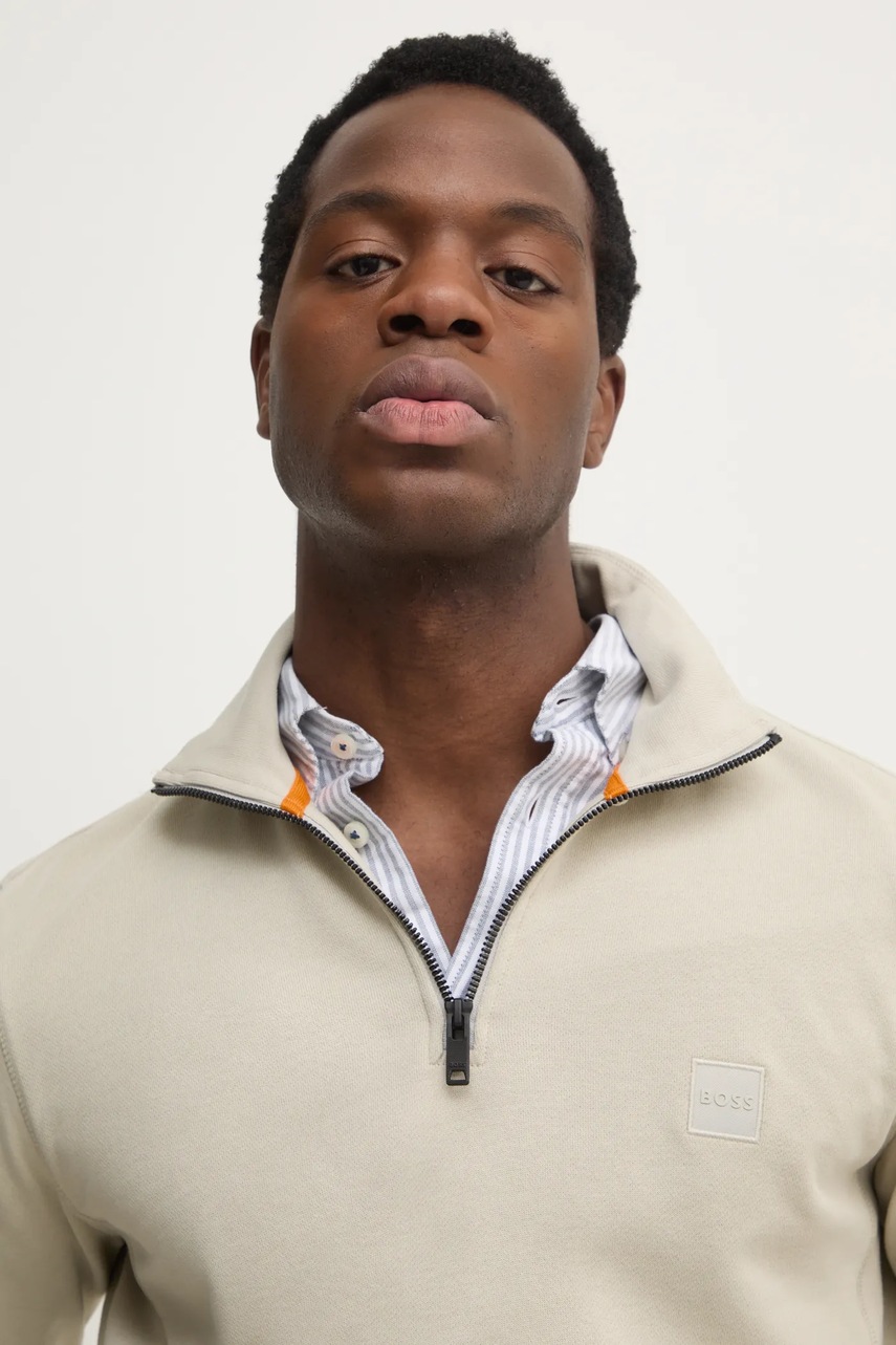 BOSS bluza bawełniana BOSS CASUAL męska kolor beżowy gładka
