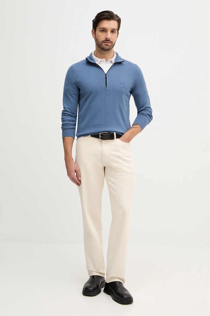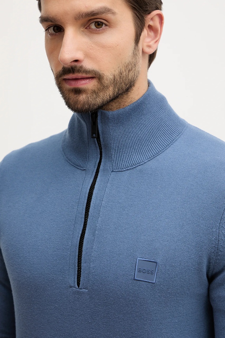 BOSS Orange sweter z domieszką wełny męski kolor niebieski lekki 50527585