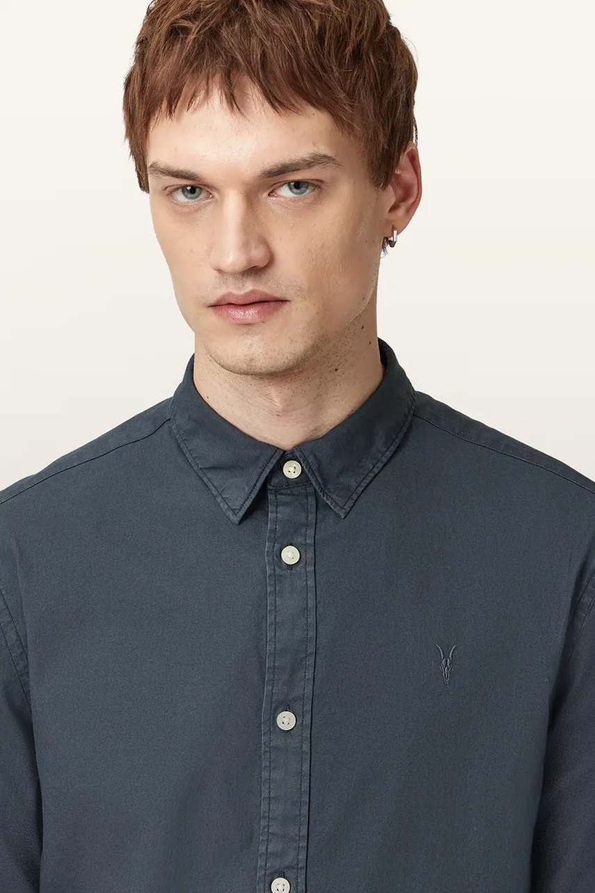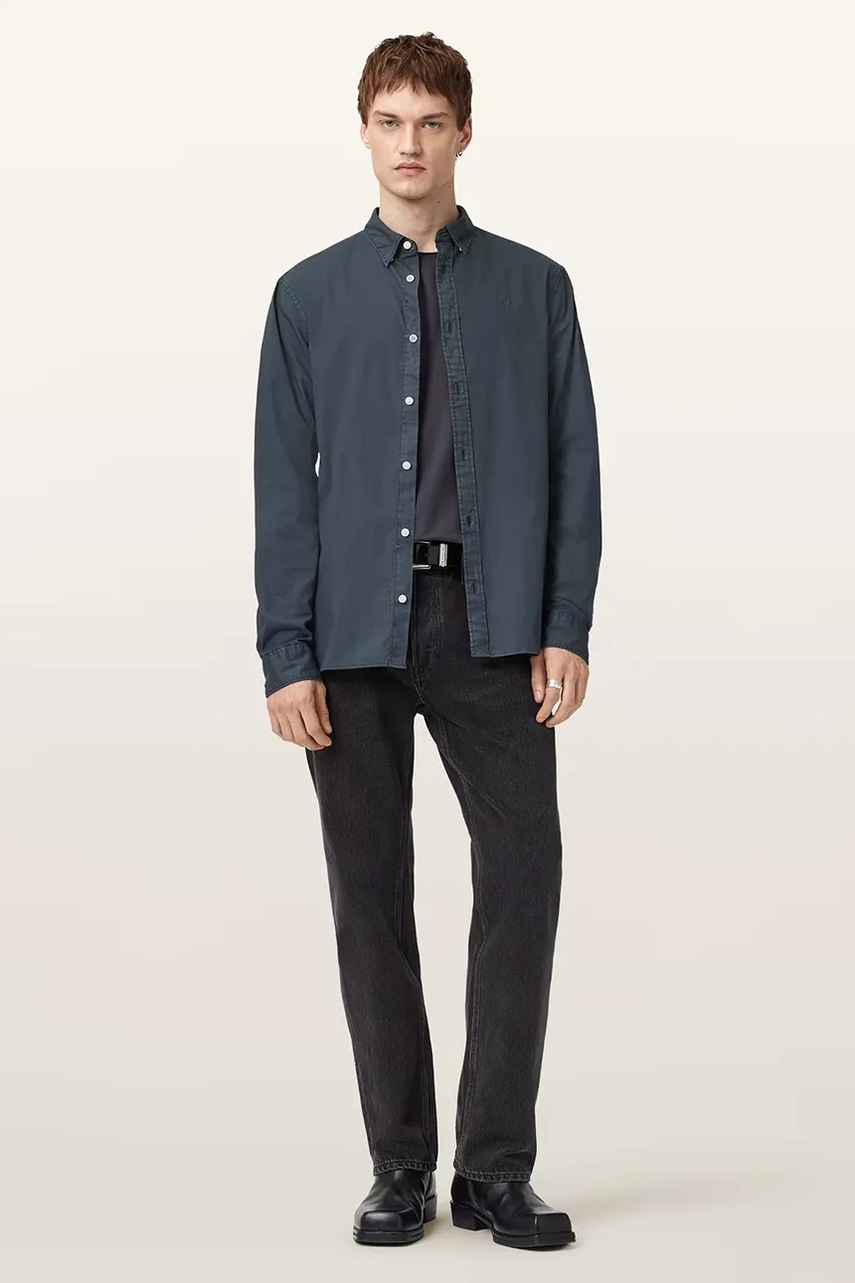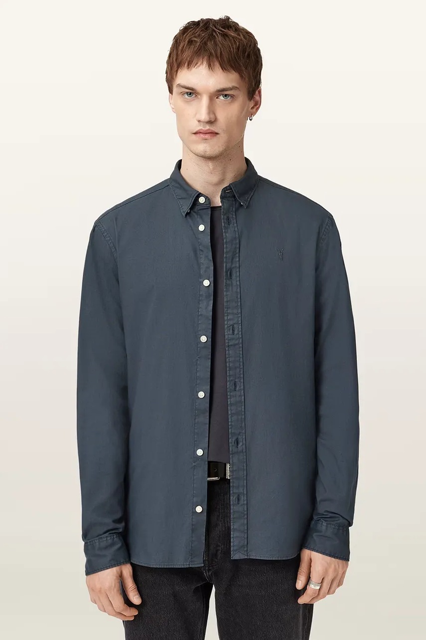 AllSaints koszula bawełniana HAWTHORNE LS SHIRT męska kolor szary slim z kołnierzykiem klasycznym M150SB