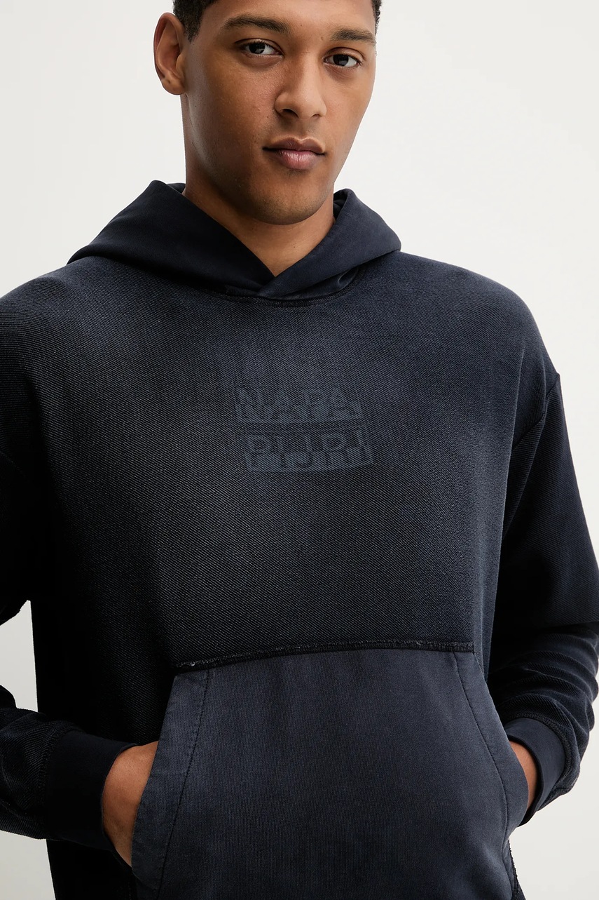 Napapijri bluza bawełniana B-Comel męska kolor granatowy z kapturem gładka NP0A88Y81761
