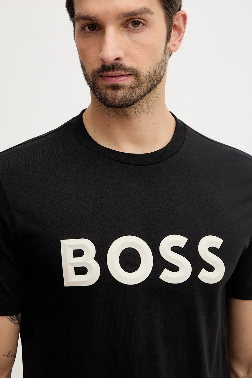 BOSS Green t-shirt bawełniany męski kolor czarny z nadrukiem 50548411