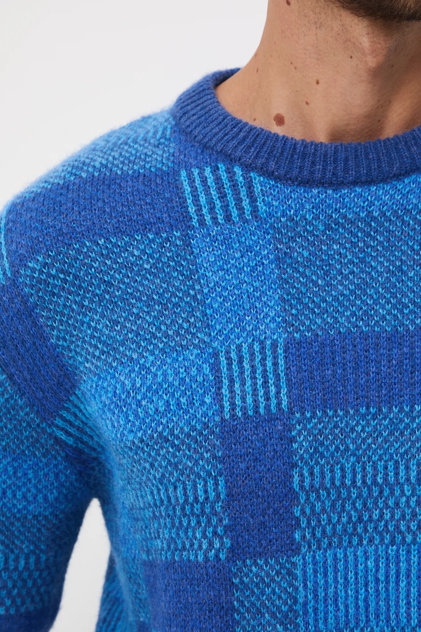 Medicine sweter z domieszką wełny męski kolor niebieski ciepły